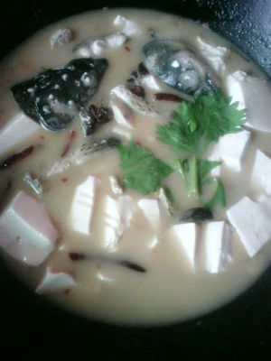 等水开后将腌制的鱼片放入锅中,在放入葱姜蒜,锅盖盖上闷十分钟放入豆腐在烧五分钟即可