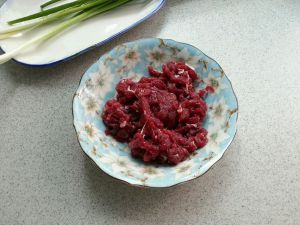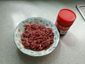牛肉加少许盐、酱油、白糖、生粉、油和一小勺沙茶酱