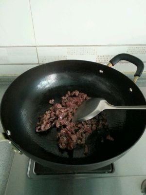开始炒了。锅热油热放牛肉炒至变色后盛出~