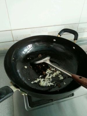 起锅热油,下去蒜末,辣椒,炒出香味