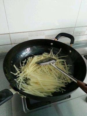 放入土豆丝,煸炒