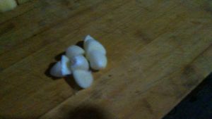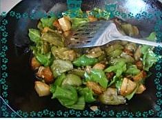 锅里倒入油,放入蒜瓣,待蒜的香味飘出后倒入菜。