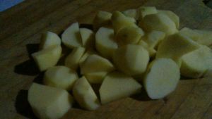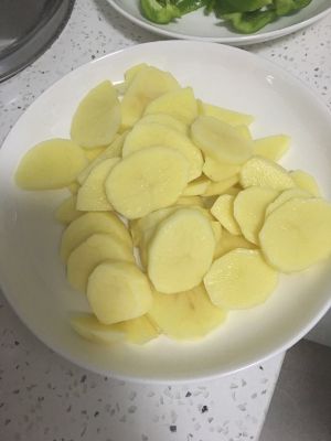土豆我喜欢切厚片,大一点的地方在中间断一刀。也是方便炸熟。
