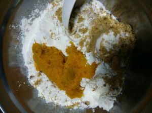 面粉过筛到南瓜泥中