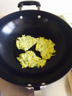 热锅放油,将适量糊放入锅中摊成饼状。小火翻面,到两面金黄。