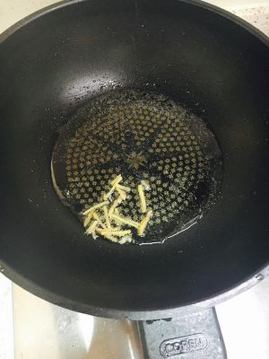 锅中热油,放入蒜末炒香后加入香干大火翻炒一下;