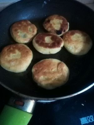 锅中放入少量油加热,将做成型的南瓜饼放入锅中煎,全程小火啊!
