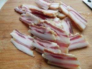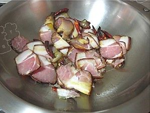 因为腊肉本来很咸,所以什么调料都不用放了,可以稍微放点糖提味。