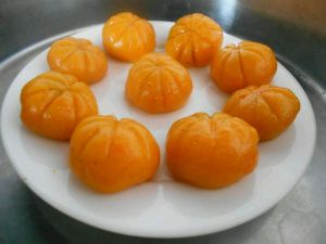 最后用牙签压成花型,好像一个金黄的小南瓜~