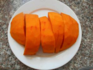 更具就餐者取适量南瓜,必须是老南瓜去皮,洗净