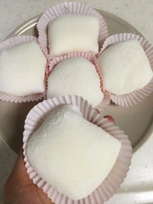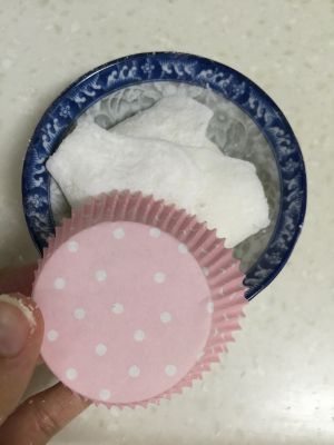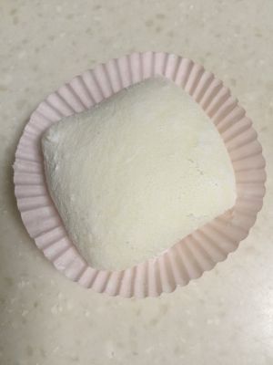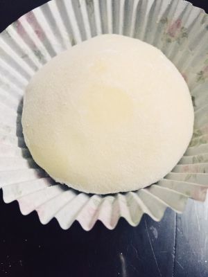 把底部的皮捏紧收边包好~在雪梅娘底部盖上纸托。