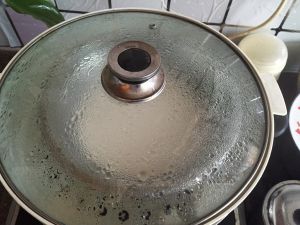 大火煮开水,把拌好的糯米糊上锅蒸,大火15分钟(水要一次性放多点,不然中途没水了好麻烦哦)