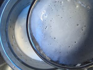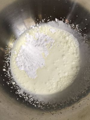 糯米粉,玉米淀粉混合过筛,加入牛奶和砂糖的混合物中搅拌均匀