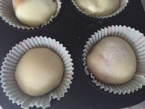 蒸好的雪梅娘皮趁热把融化的黄油代入,揉拌均匀,(手简直变成红烧猪蹄(。•ˇ‸ˇ•。))