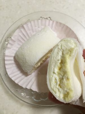 建议放冰箱冷冻5小时后食用,取出切件如图,吃起来口感像雪糕糯米滋,超好吃,棒极了!