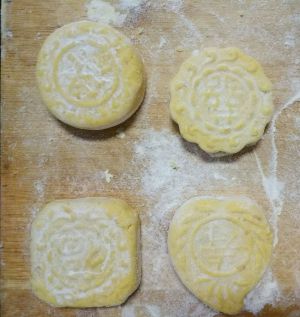 待南瓜变成温温的加入糯米粉 和面粉应该都会 反正不要太黏手应该就ok了 我也第一次做 请忽略我的手指印 哈哈