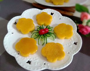 南瓜切薄片蒸熟,加入白糖按压成泥后放凉。