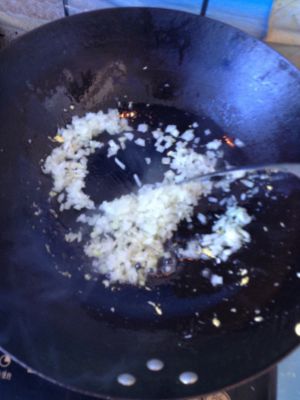 接着,把小葱的葱叶放入锅内,翻炒均匀,即可出锅。