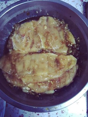 盆里放生抽,耗油,盐,糖,白胡椒粉,洋葱碎,根据自己的口味调味儿,腌2个小时以上,如果时间充足可以腌12小时,这样更入味。