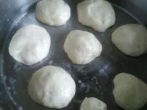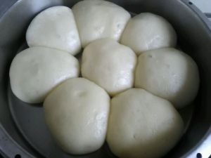 再 次揉面,15分钟。做成小团,放于锅内发酵20分钟左右,变成两倍大,冷水蒸,水开后蒸15分钟就行。