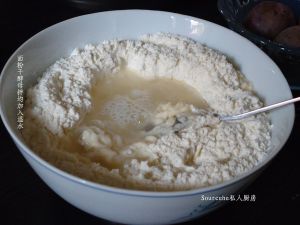 面粉加入干酵母拌均,加入40°水,搅拌均匀;