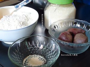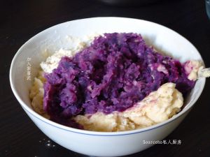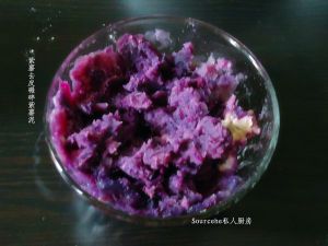 煮熟的紫薯,去皮,斩碎成紫薯泥;