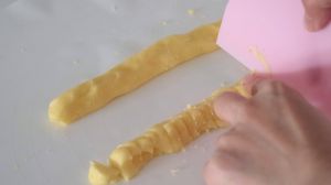 切成均匀的小等分,每个大约一截小指头那么多。