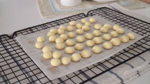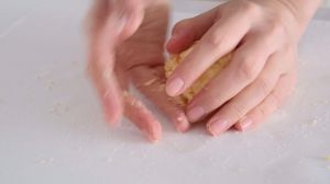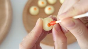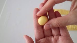 先捏一下,再放在手心轻轻滚圆。 (太重会散掉的哦!)