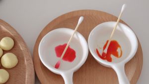 【如果想要更可爱的装饰】 橙色和粉色色素各2滴,加2滴水调匀。