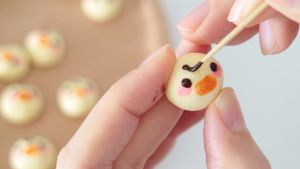 或者也可以将巧克力微波中火融化,用牙签画上眼睛和毛。