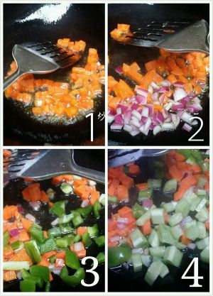 准备所有食材,切成块,蔬菜尽量切的比馒头小点儿,好熟。