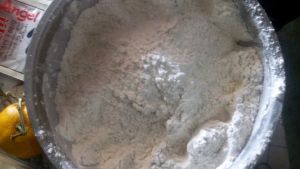 600克面粉中倒入5克酵母粉,倒入晾凉至温热的红糖水,边倒边搅拌成絮状;
