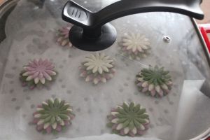 大火烧开后放入雏菊馒头,转中火15分钟后焖5分钟即可。