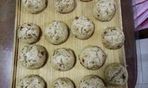 7重新揉面团,可能有点粘手放点面粉揉面,然后把面分成16块左右的面团,(你可根据自己的喜好分大分小)分别把面团揉圆,用剪刀在揉圆的面团上剪个十字花!