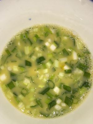 鸡蛋打散放入适量盐,如果不就咸菜可以稍微多一点盐