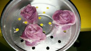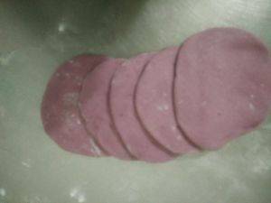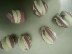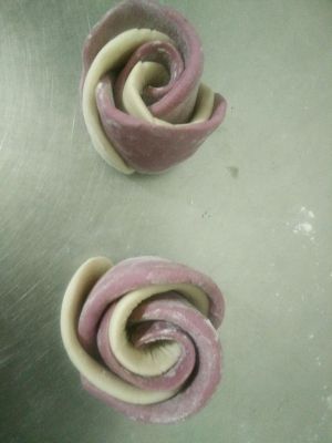 将紫薯,面粉,酵母粉 适量的温水搅匀 揉成光滑的面团