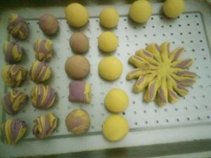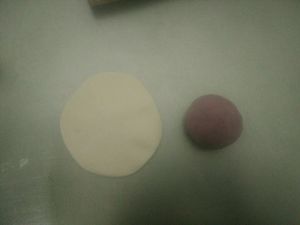 取一部分面团 慢慢添加红曲粉 揉均匀即可