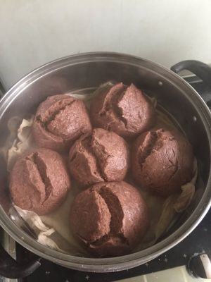 全部整好,先放在蒸屉里,锅中烧40度的温水蒸屉放上去,发酵到1.5倍大,用手点上去面团紧绷的状态