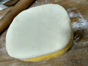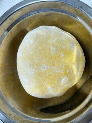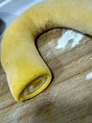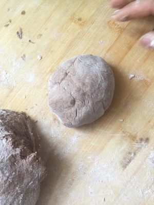 最后搓成一个椭圆形压扁了,整理成一个大半圆形状