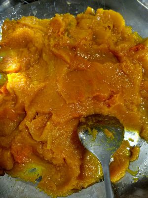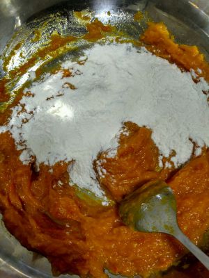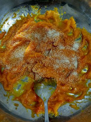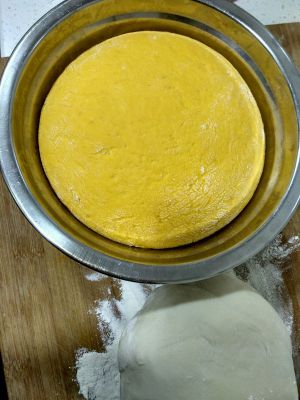 南瓜蒸熟趁热压成泥,不烫的时候加入酵母搅拌均匀