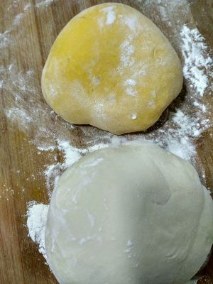 白面团分成40克一个大概有7个用保鲜膜盖好避免风干,取出一个面团搓成长条再折回去,反复的搓几次,面团就非常光滑了