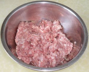 白菜 葱 大蒜 白蘑菇 trader joe羊腿肉机器打碎 白蘑菇充当油肉 羊腿上脂肪都剪刀剪干净 撒上孜然粉和盐