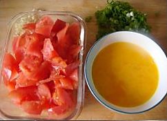 西红柿切块,鸡蛋里面少放一点水打散备用