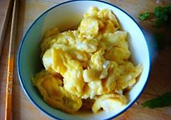 鸡蛋打成蛋液加少许温水少许盐大火快炒(注意不要炒老)盛出备用