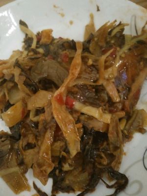 等鱼肉腌好了,起锅上油,热锅冷油放进鱼骨,煎至两面带点金黄,捞出来。用现油锅,爆花椒辣椒姜蒜,爆出味再放酸菜炒,炒熟透酸菜最后再放煎好的鱼骨,放盐。轻轻再炒几分钟再放水煮。