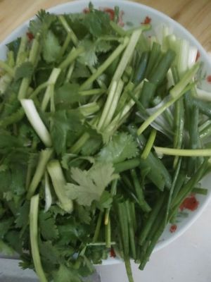 将成品装盘(装盘时要注意尽量将鱼片放在最上层),洒上小葱和香菜。将锅洗净擦干,向锅中倒入适量菜油(如喜欢辣就放入干椒炸),油温八成热后倒在鱼片上。大功告成