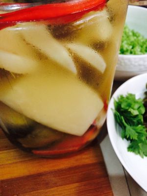 锅洗净 入水 加入姜片 泡菜 葱结,烧开