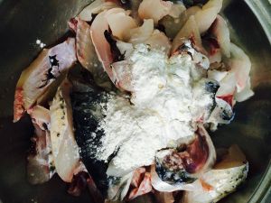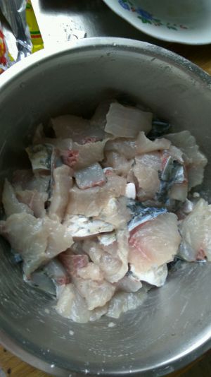 鱼肉切片,加鸡蛋,喜爱调味,淀粉抓匀