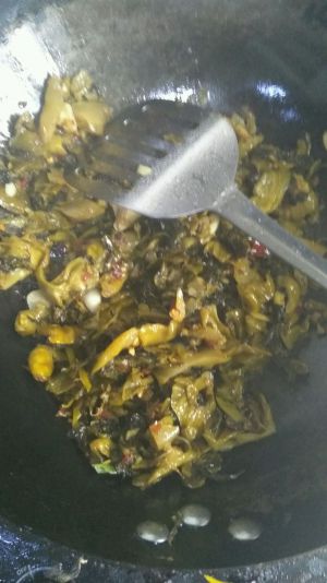 将酸菜、泡野山椒、大葱、干辣椒切段,姜切片,蒜切块。锅中倒入适量菜籽油,油热后放入切好的配料和花椒翻炒,待酸菜味出放入鱼头炒两分钟左右,然后加入适量冷水,待水开后下鱼,待水再次翻滚3~5分钟关火,盛到铺好粉丝的盆里即可。