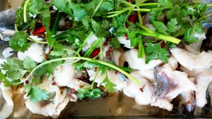 完成后,将烧热的辣椒油直接浇在鱼片中即可